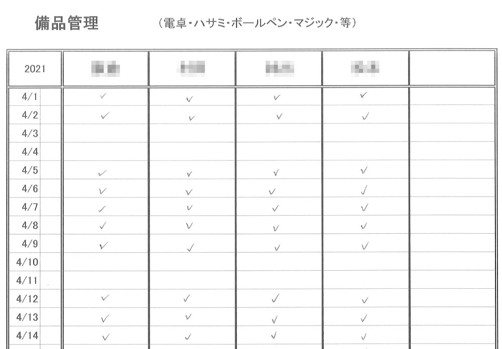 - 汚れ・穴あき等で使用できなくなった場合は、事務所に申告し交換する。