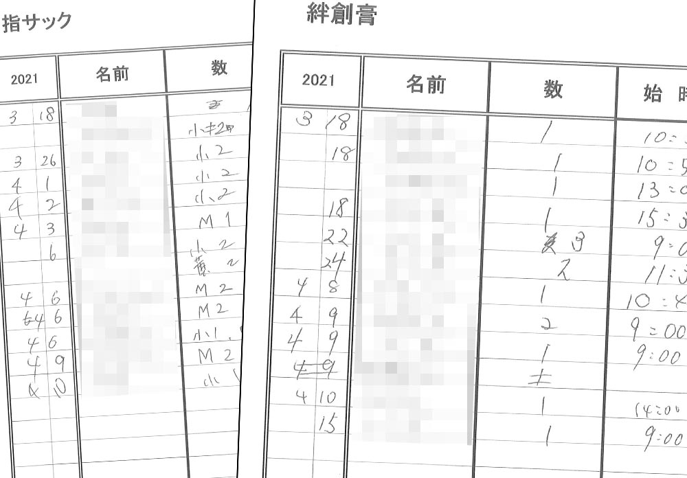 - 備品には管理番号を付け、朝に場内へ持ち込み、持ち込んだものを日報に記入。