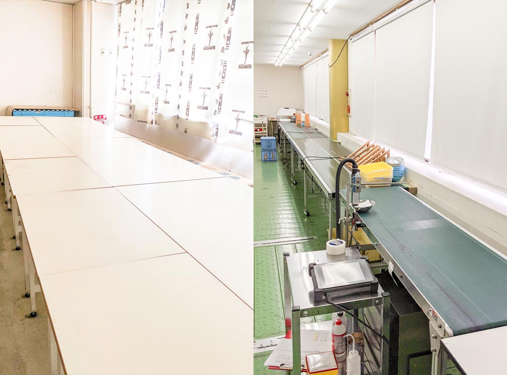 - コンベア上および作業台上のものは全てもとの場所に戻す。